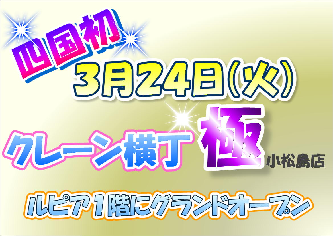 3月7日(土)・・・・ルピアの日(ポイント2倍) 3月8日(日)・・・・ルピアの日(ポイント2倍) 3月7日(土)・・・・ドコモショップ プログラミング教室8日まで 1階エレベーター前 3月14日(土)・・・ドコモショップ プログラミング教室15日まで 1階エレベーター前 3月18日(水)・・・血管年齢測定会19日まで カーブス 1階エレベーター前 3月24日(火)・・・クレーン横丁 極 グランドオープン